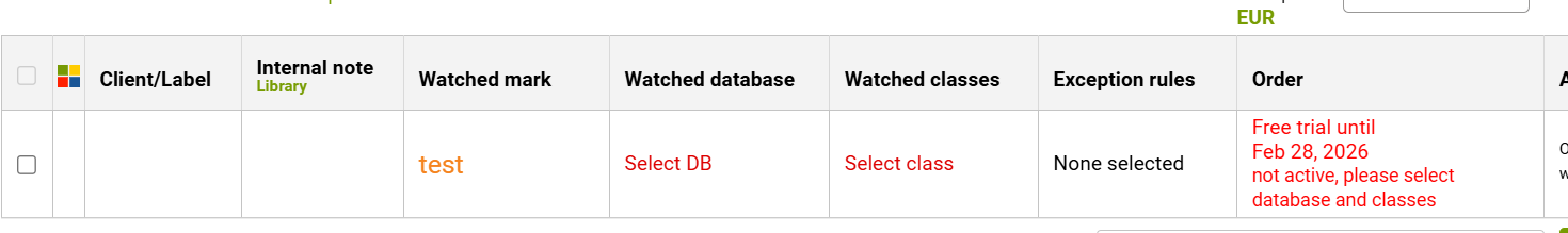 Please see below, this is a watch on a free trial that is NOT activated - the red warning in Order column specifies that missing parameters must be added: